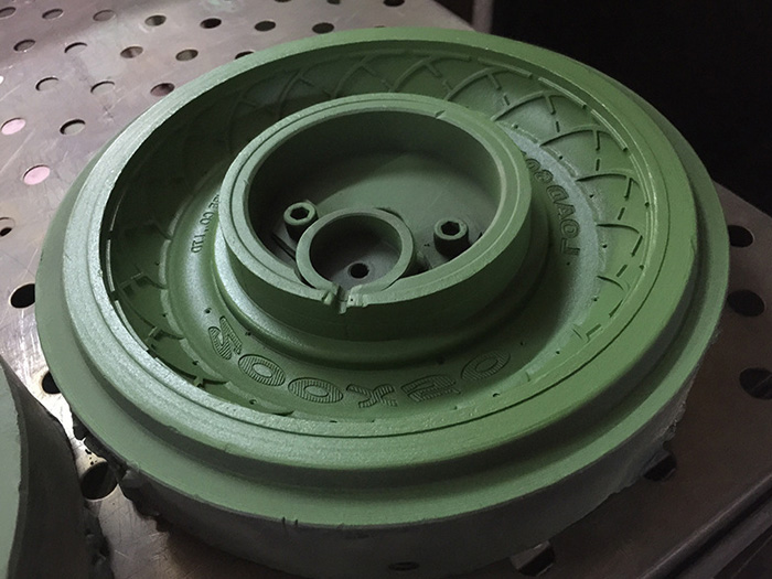 采用手工的砂布或鋼絲物理研磨及干式噴砂,根據(jù)需要可以選用不同的組合清洗。機(jī)械清洗法是一項(xiàng)成熟的技術(shù),被輪胎行業(yè)廣泛采用。該法具有簡(jiǎn)單易行,對(duì)設(shè)備、工具要求不高等優(yōu)點(diǎn),但也有無法克服的缺陷:會(huì)對(duì)模具造成機(jī)械損傷,縮短模具壽命;噴砂處理容易堵塞模具的排氣孔,噴砂后疏通排氣孔的工作量很大。須拆裝模具,造成勞動(dòng)強(qiáng)度高,清洗周期長(zhǎng)。